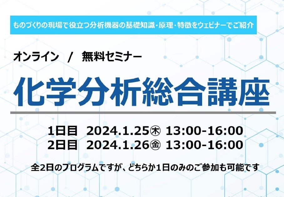 ものづくりの現場で役立つ分析機器の基礎知識・原理・特徴を伝授 「化学分析総合講座」無料ウェビナー開催