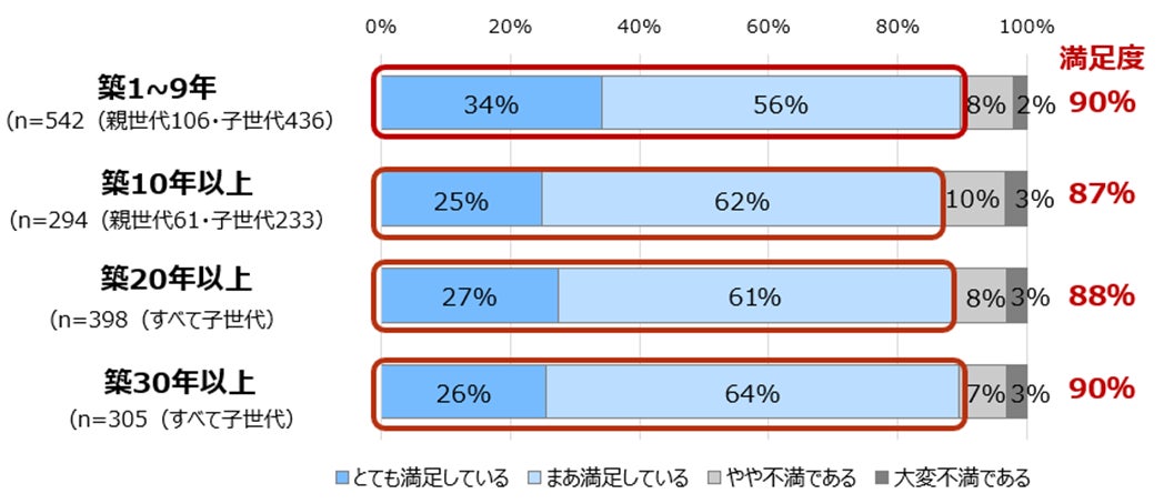 ヘーベルハウスの二世帯同居の満足度、築年数を問わず約9割が「満足」
