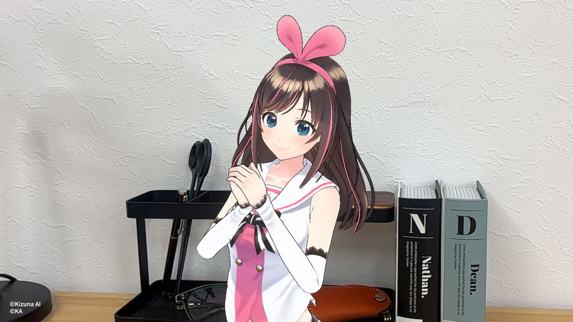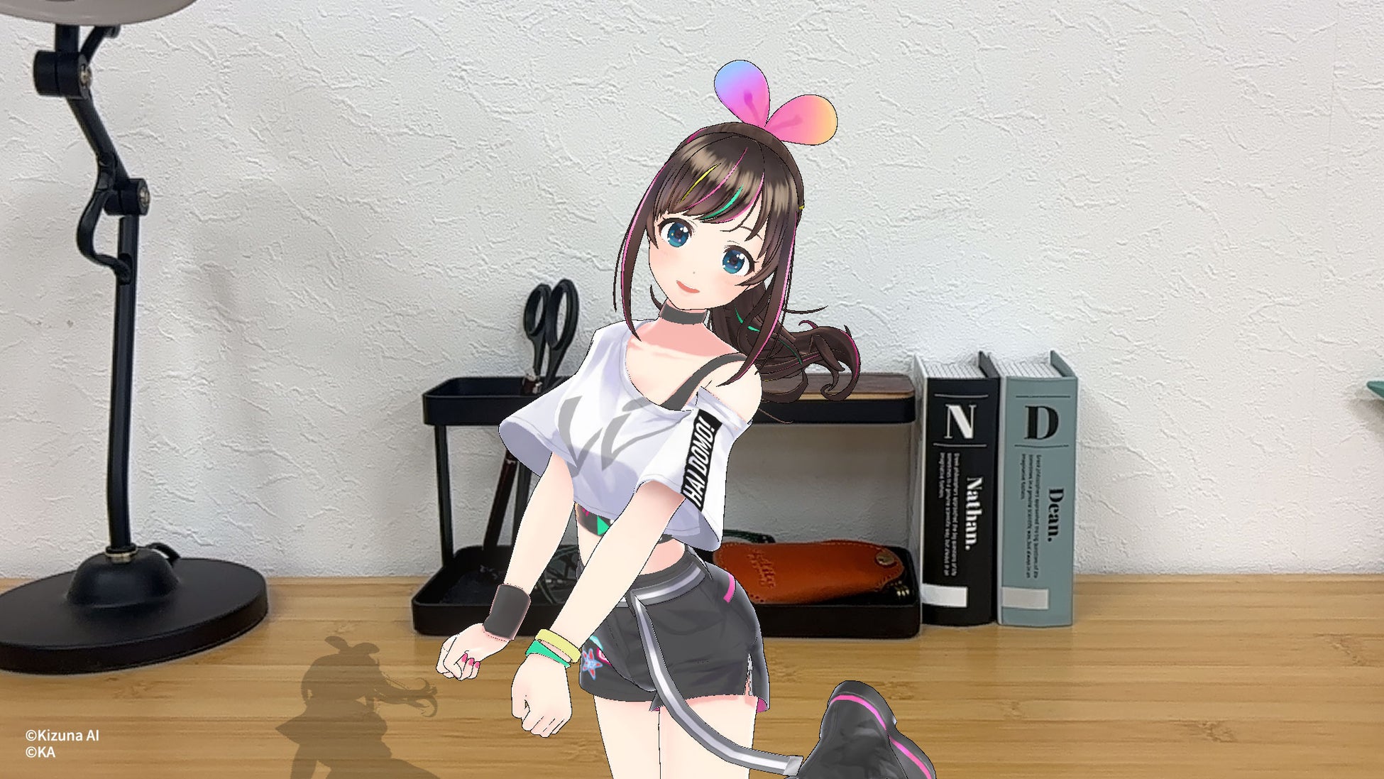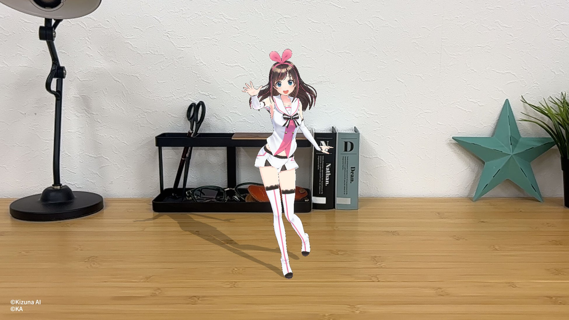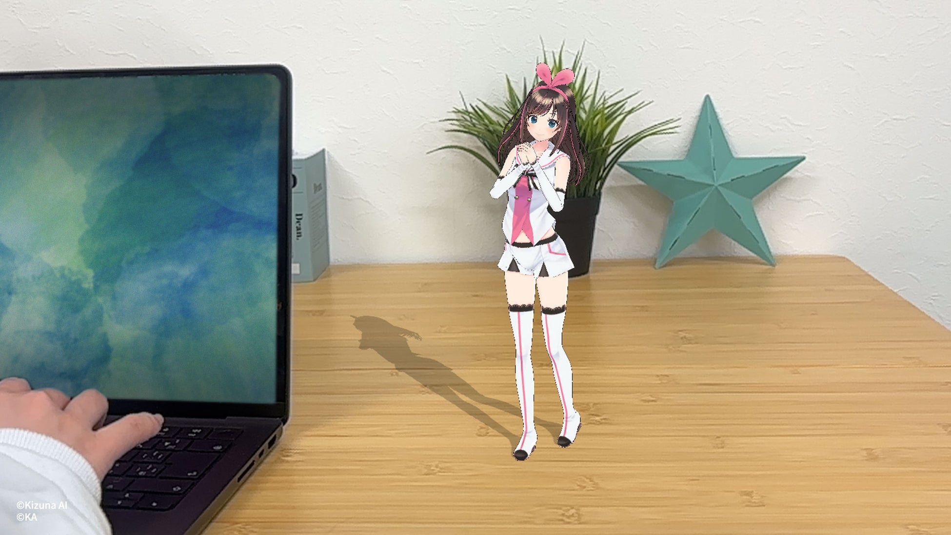 スマートフォンやMRデバイスを活用してキャラクターの表情・ポーズ・サイズを自由に変更が可能なデジタルフィギュアで、机の上に配置してみたり、等身大にすれば日常生活の中にキズナアイがいるかのような体験をお楽しみいただけます。