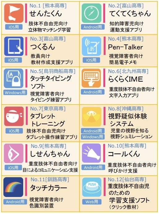〇文科省GIGAスクール構想に利用可能な特別支援学校用アプリ特別支援学校などで配布されているタブレットで利用可能な特別支援教育アプリ