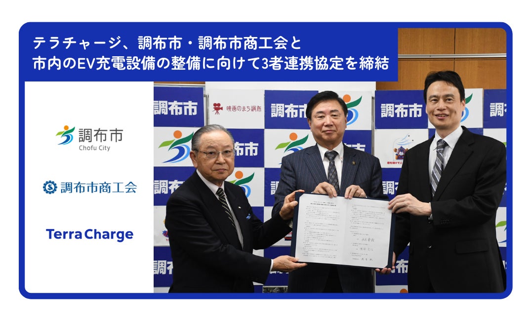 Terra Charge、調布市・調布市商工会と市内のEV充電設備の整備に向けて3者連携協定を締結