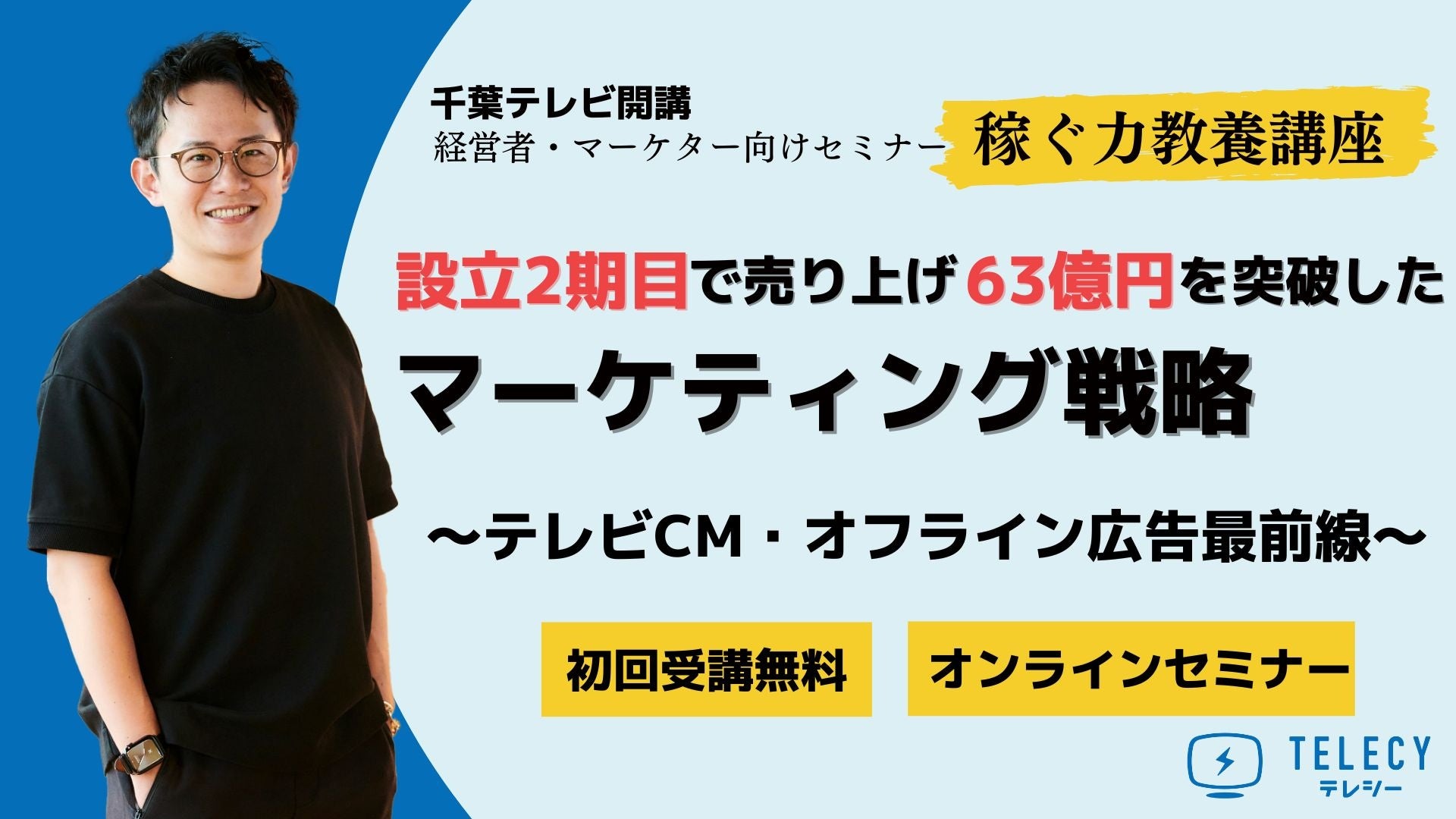 このセミナーでは、設立2期目で売上63億円を達成したテレシーの代表 土井が、「テレビCM・オフライン広告最前線」をテーマに、具体的な実例をもとに中小企業の事業成長に繋がる広告の活用方法や、成功するための秘訣などをお伝えいたします。