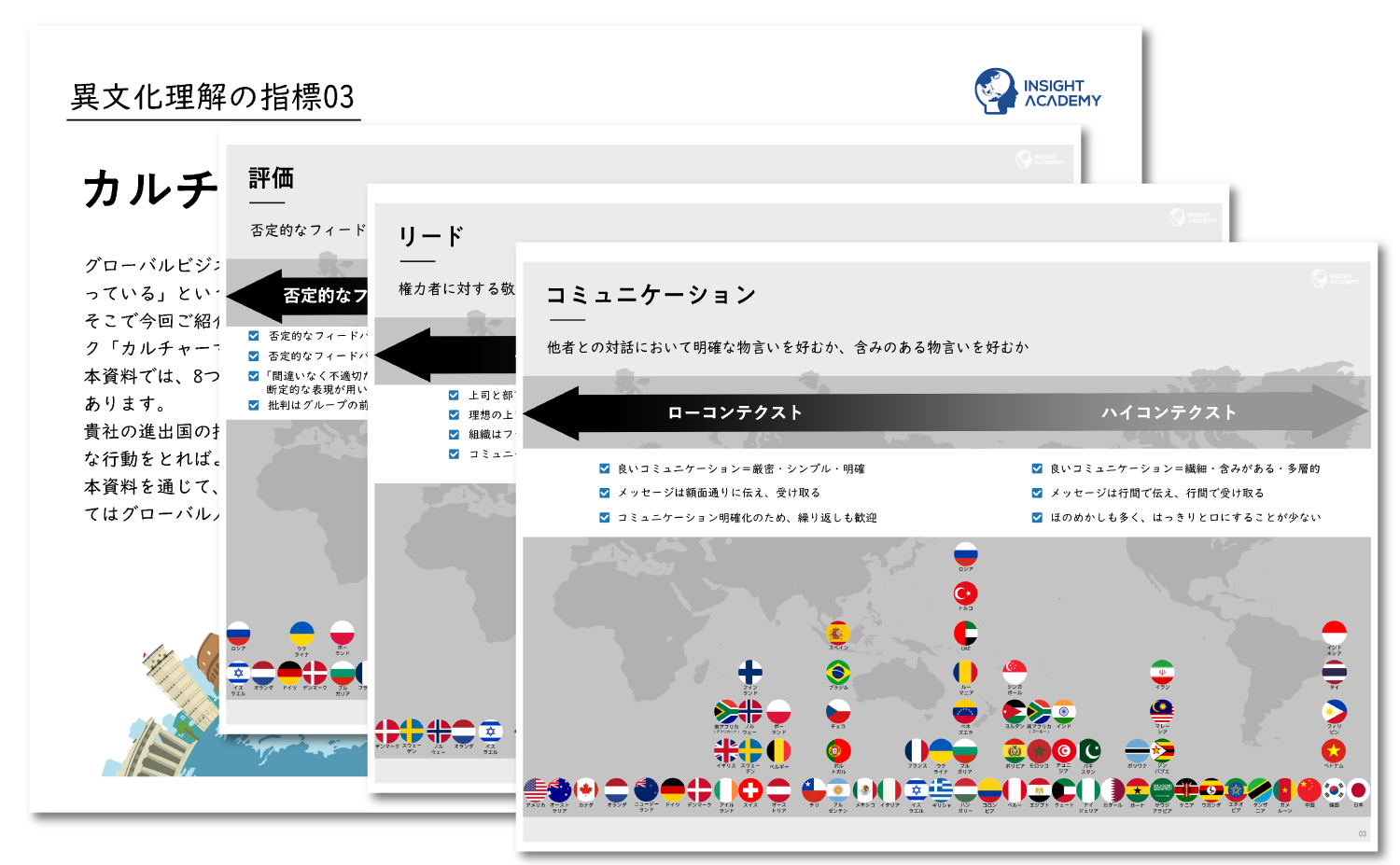 無料でダウンロード可能なので、ぜひご覧いただき、国内外における異文化コミュニケーションやマネジメントにご活用いただくと共に、貴社のグローバル人材育成研修にお役立て下さい。