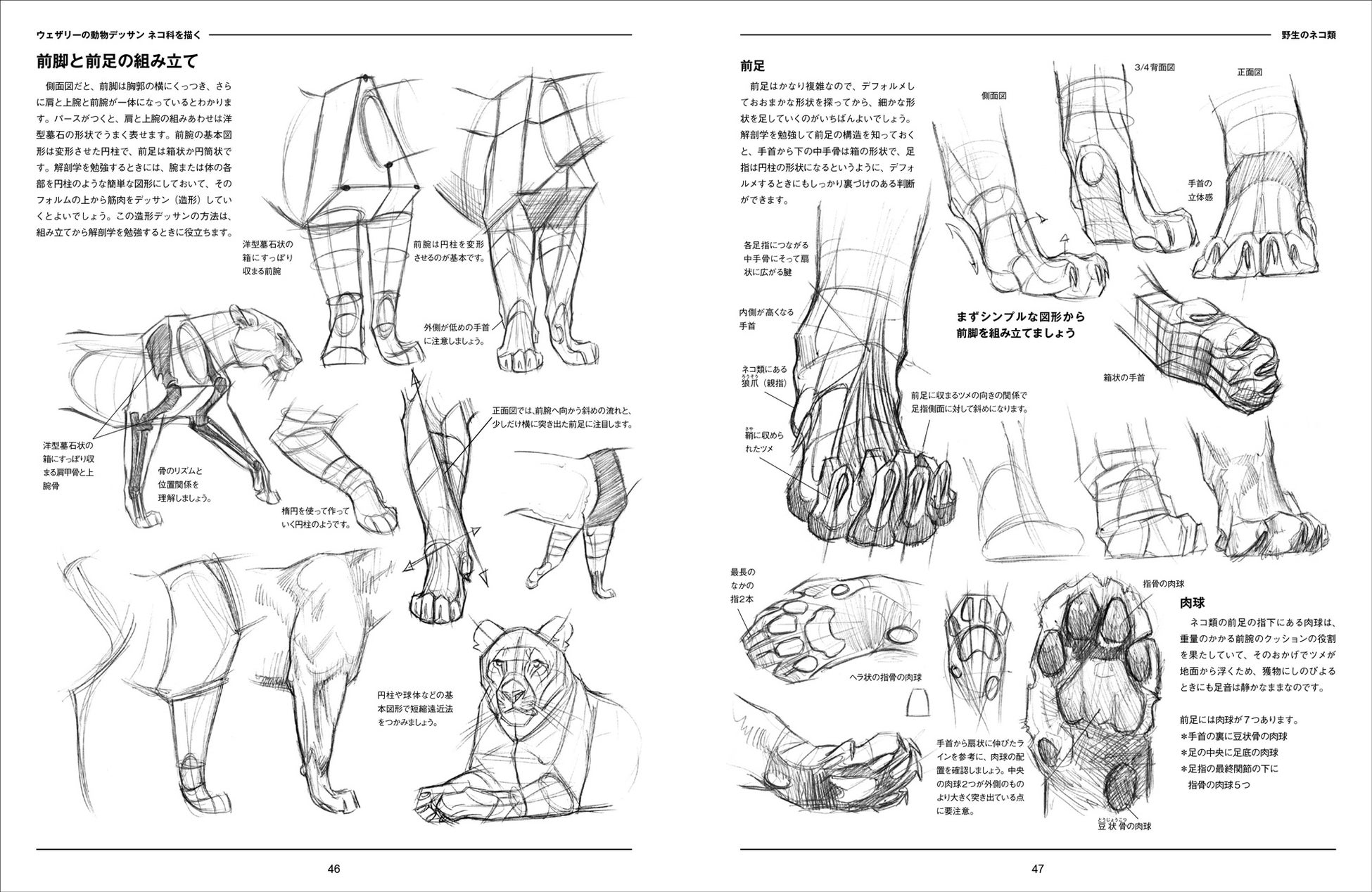 本書は、そんなウェザリーによる初のネコ科動物に特化したデッサン教本 。