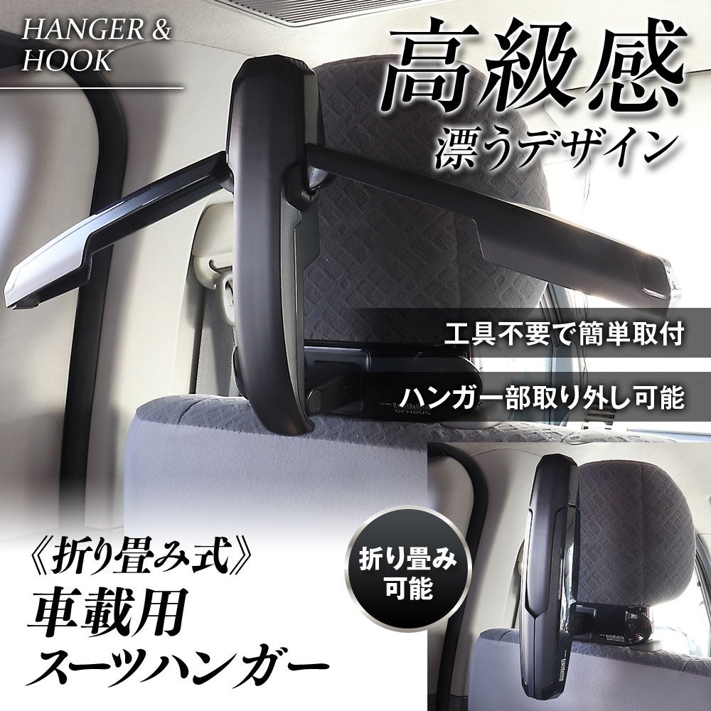 ヘッドレストに固定するだけ、工具不要で簡単取付。 脱着式で使用しない時はハンガー部を簡単に取り外せます。 スタイリッシュなデザインで、車内のインテリア性も損なうことはありません。 営業マンの強い味方、車で通勤するビジネスマンにも欠かせないアイテムです。