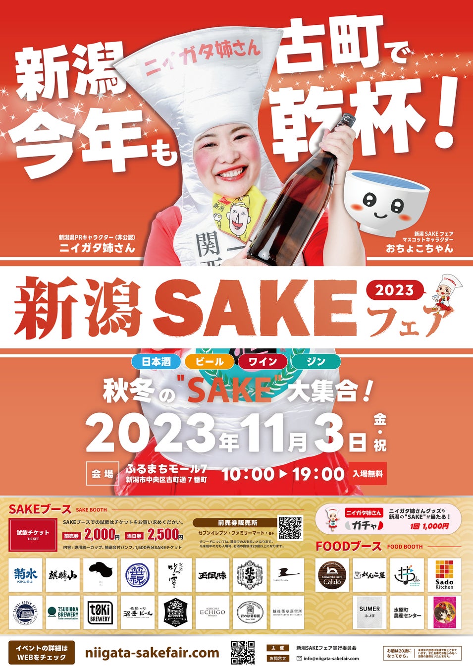 新潟県内の観光や物産を情報発信している新潟県PRキャラクター(非公認)ニイガタ姉さんがプロデュースする県内の日本酒、ビール、ワインなどの「SAKE」を堪能できるイベント。