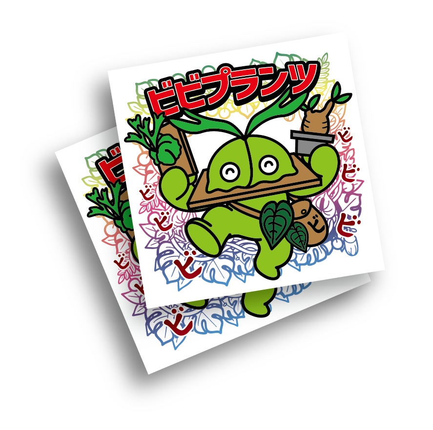 ビビプランツ公式Instagramアカウント(@bibilab_plants)のフォロー画面をブーススタッフにご提示いただいた方に、特製ステッカーをプレゼント(※数量限定、なくなり次第終了)。ビビプランツ公式キャラクター・ビカクシダの「ビカくん」がプリントされた、ここでしか手に入らない限定デザインです。