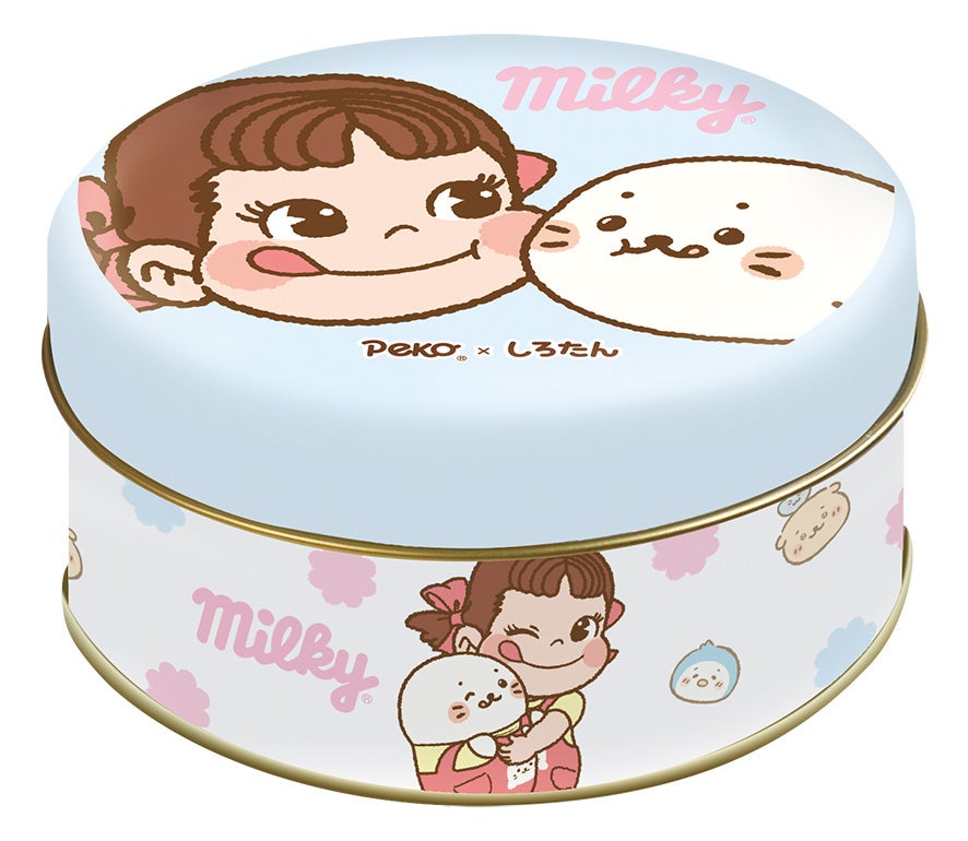 「ミルキー缶(ペコちゃん×しろたん)」<デザイン全2種類>