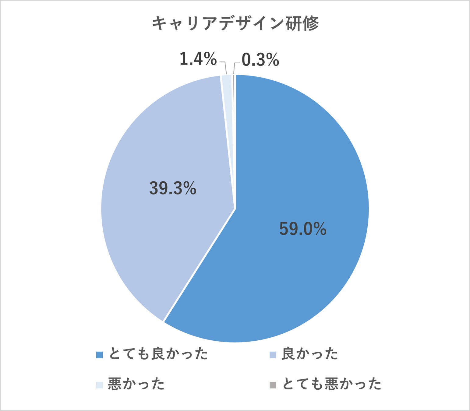 参加者の98.3%が「とても良かった」または「良かった」と回答しており、特にキャリアデザインの実践方法や考え方、自己成長を促す内容が評価されました。