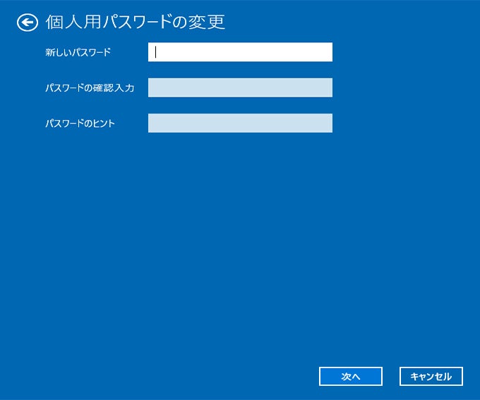 Step5:新しいパスワードとヒントを入力して、「次へ」をクリックします。
