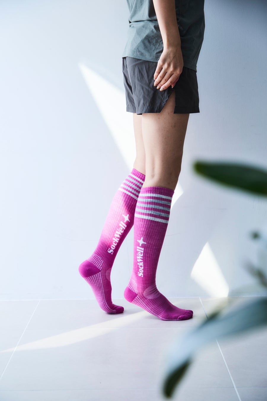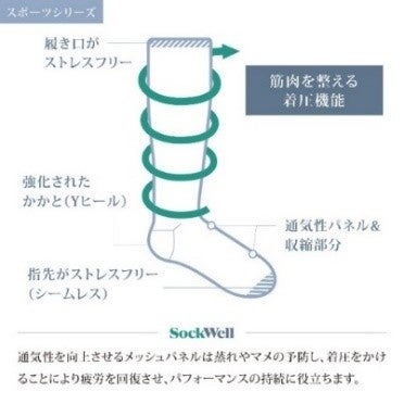 デザインにソックウェルのロゴをあしらった着圧ソックスが登場。