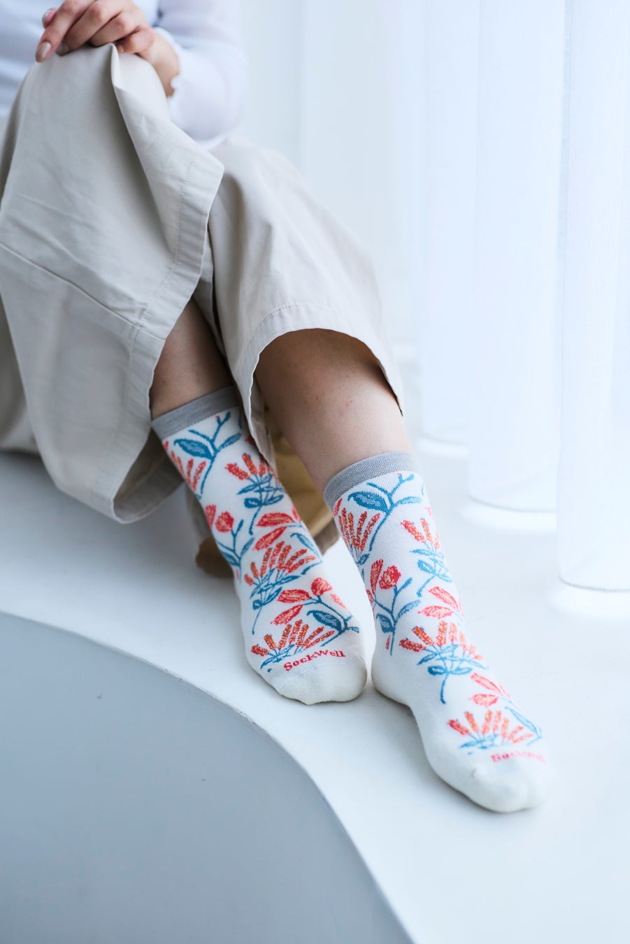 品のあるフラワーデザインが足元をさりげなく、華やかに演出するレディースソックス。やわらかな履き心地と落ち着いたカラーリングで、日常からお出かけまで幅広く活躍。コーディネートに上品なアクセントを添えます。