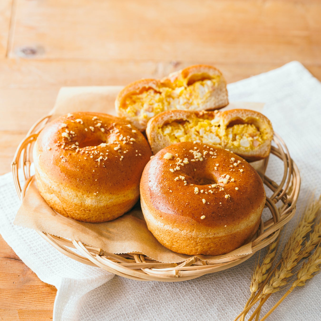 ダイスベーコン入りのたまごサラダを、ふんわり生地でたっぷりと包みました。一口目から生地と一緒にたまごサラダを楽しめる、食べ応えのある惣菜パンです。