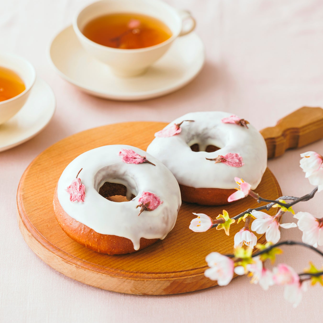 三越伊勢丹限定の「桜ドーナツ」は、桜葉のミンチと桜の花を混ぜた白あんが中に入っており、程よい塩味と桜の香りをお楽しみいただけます。