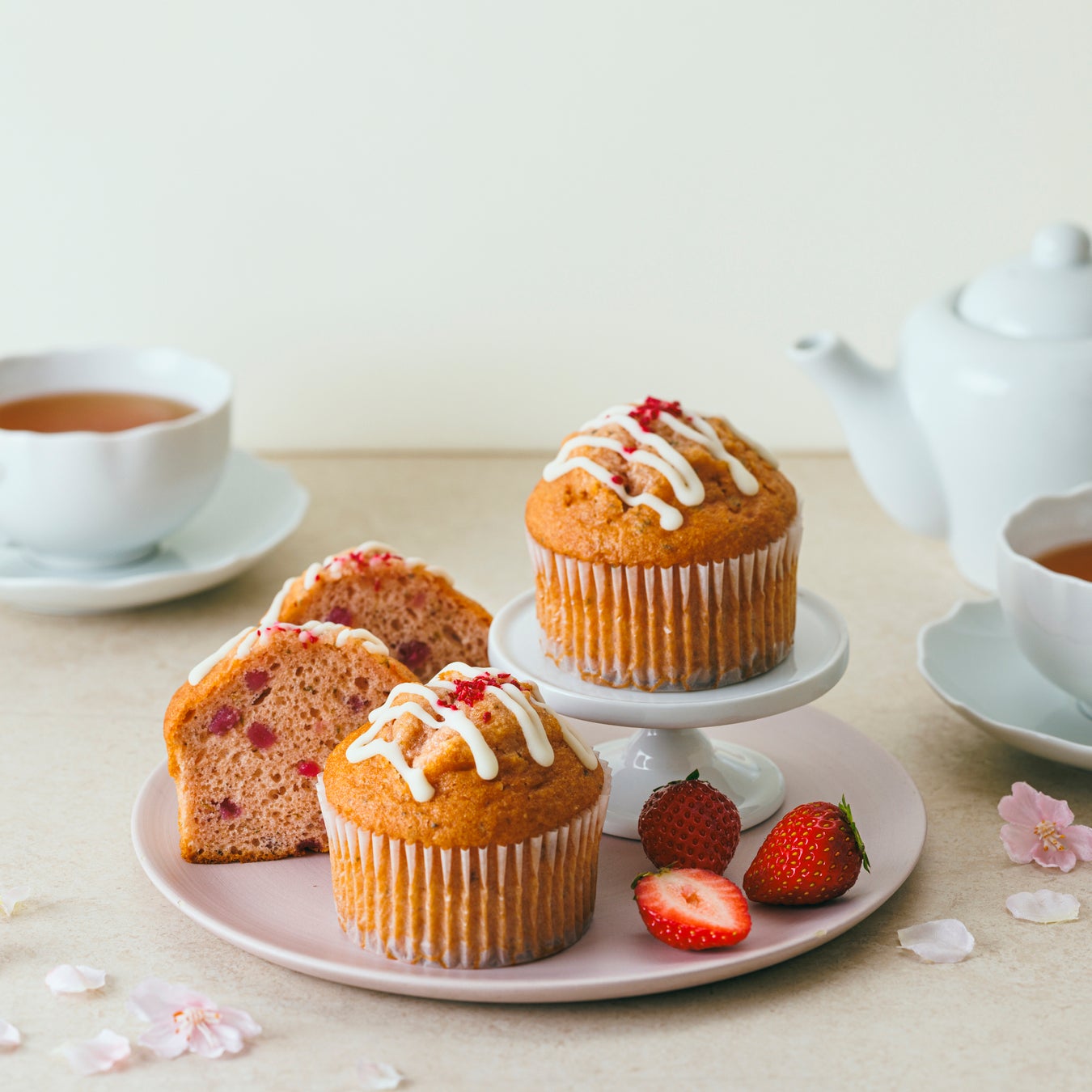 しっとりとした桜風味の生地にいちごシュガーチップを合わせた、桜もいちごも楽しめる彩り華やかなマフィンです。