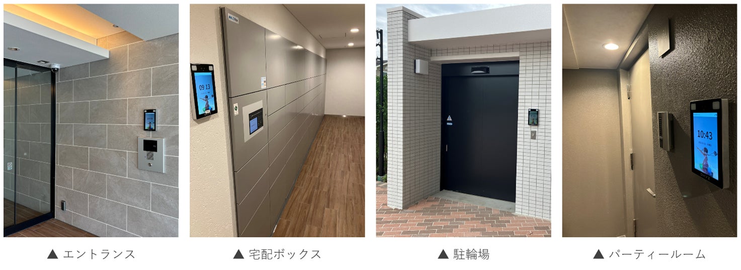 今回、グループ会社のDXYZは、本物件のエントランス2カ所、宅配ボックス、ゴミ置き場、駐輪場入り口、パーティールームの計6カ所に顔認証プラットフォーム「FreeiD」を導入しております。パーティールームにおいては、「FreeiD Reserve」の利用が可能となっており、本物件の入居者は「FreeiD」から施設を予約すると当日は顔認証でスムーズにご利用いただけます。