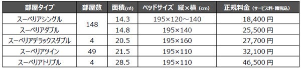 ・料金:1名1室8,500円~、2名1室10,500円~、3名1室15,900円~(サービス料・諸税込)