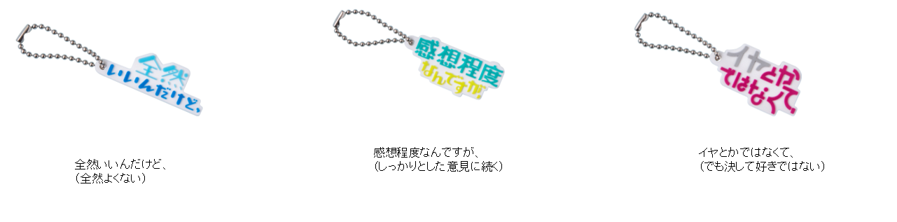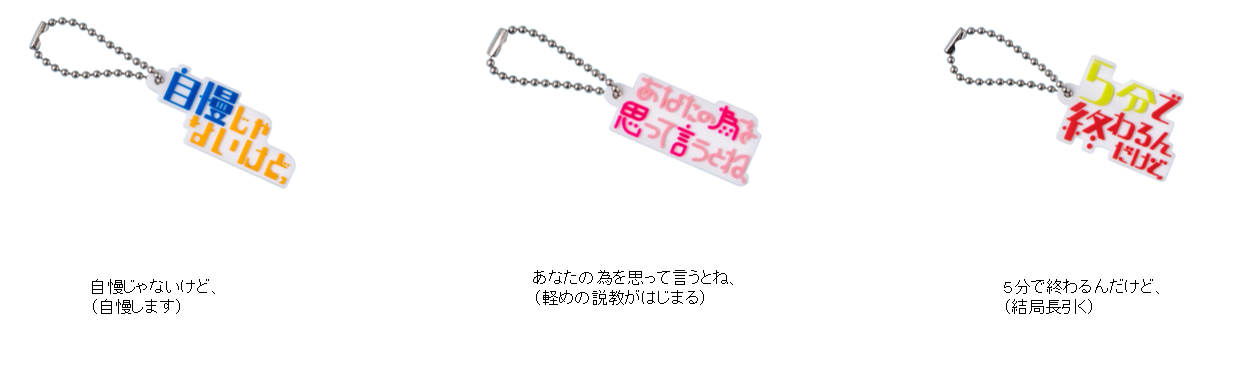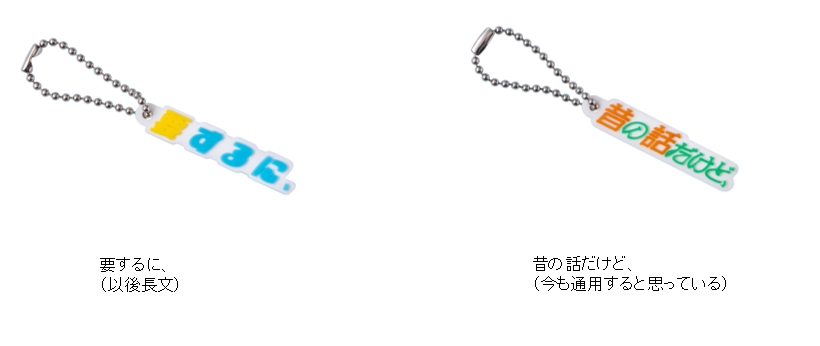 「ちい告」第7号で発表した、会話のはじまりにな〜んかつけちゃう意味をなさない言葉たち。その名も「無意味枕詞」が、まさかのラバーマスコットになって、ガシャポン🄬に登場!!2023年2月第3週より、順次全国の玩具売場、量販店、家電店などに設置されたカプセル自販機にて販売。会話のはじまりだけでなく、ポーチやカバンなどに付けてお楽しみください。無意味に、色鮮やかな仕上がりとなっております。