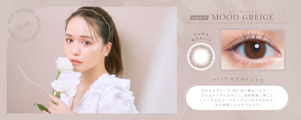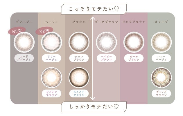 今回発売になるのは、ブランド内でも特に人気の高いベージュ系レンズ「LILY BEIGE」と、ユーザーから欲しいとの声が多かったグレージュ系レンズ「MOOD GREIGE」の2色。