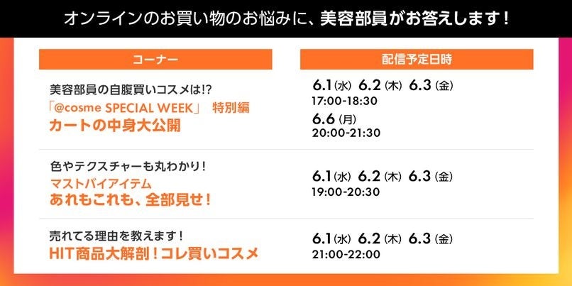 @cosme公式通販のスペシャルイベント「@cosme SPECIAL WEEK」6月1日(水)12:00開始~450以上のスペシャルアイテムの販売や、ライブ配信企画を開催~