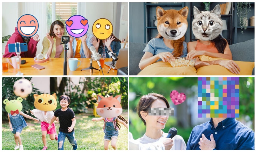 SNS などに写真をアップロードするときに、顔を出すのが恥ずかしかったり、周りの人のプライバシーを守るための、顔を隠しつつ個性や気持ちを表現できる15種類のステッカーです。