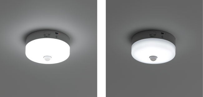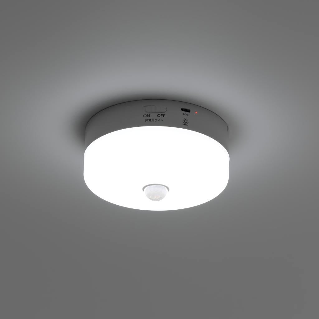 シーリング時は、人感・明暗センサーで点灯します。停電時は非常用ライトが自動点灯します。