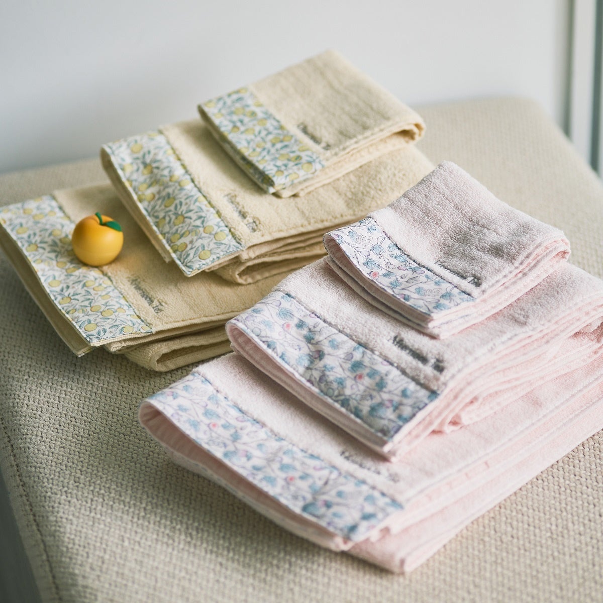ミニタオル 各¥770、フェイスタオル 各¥1,540、コンパクトバスタオル 各¥2,750、マルチバーム ¥990