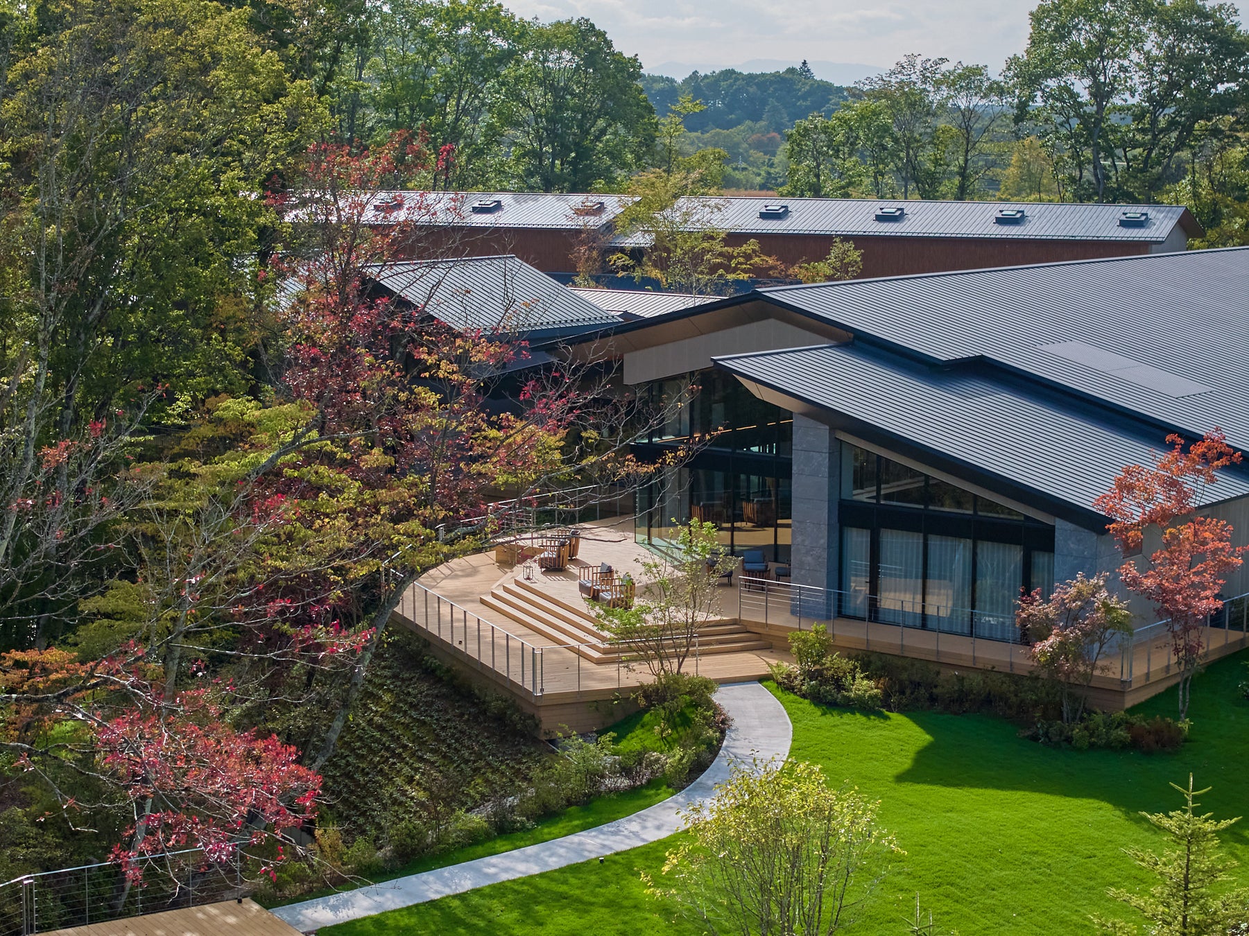 本施設では100%再生可能エネルギーを使用しており、サステナブルな取り組みに力を入れております。既存の樹木を出来る限り存置する施設計画とし、伐採樹木数を上回る新植や、伐採樹木を使用した巣箱の設置など自然や野生動物との共生を目指しています。