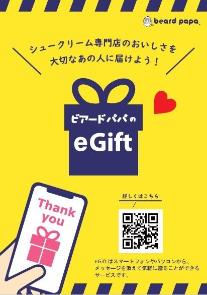 株式会社麦の穂(本社:大阪府大阪市北区/代表取締役:杉内健吉)は、eギフトプラットフォーム事業を展開する株式会社ギフティ(本社:東京都品川区/代表取締役:太田睦、鈴木達哉/以下、ギフティ)の eギフト販売システム「eGift System」と連携し、全国のシュークリーム専門店“ビアードパパ”でご利用できるeギフトを、「ビアードパパのeGift」販売サイト 及びeギフト販売サービス「giftee」にて、2022年6月30日(木)より販売開始いたします。