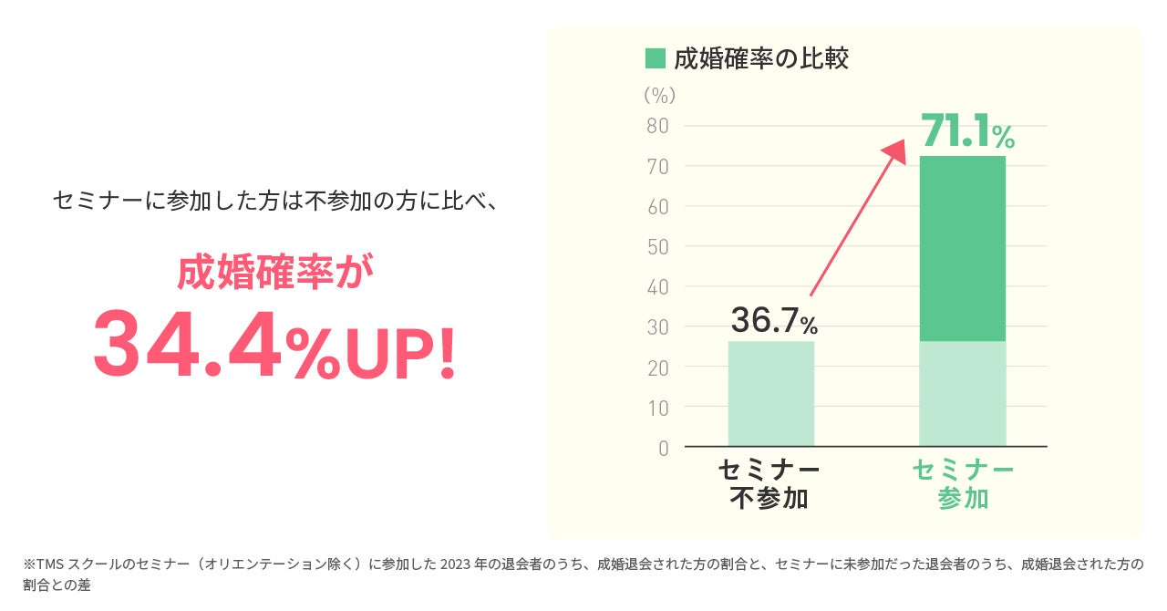 セミナーに参加した方は不参加の方に比べ、成婚確率が34.4%UP!