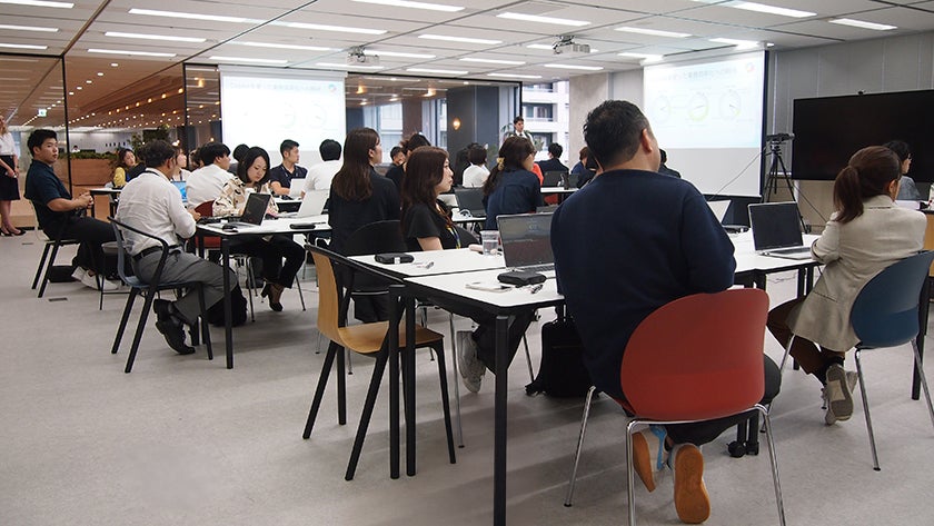 最後に、参加者も操作しながら実践するハンズオン演習を行いました。Copilotへプロンプトで指示を出しながら実際にPowerPointで資料を作成しました。参加者からは、「すでにCopilotを業務で使用しているが、今回のハンズオン演習で新しい活用法も知ることできて有意義だった」、「Copilotがどこまでプロンプトのパターンを学習できるのか不明だったが、直接質問することができてクリアになった」、「自分だけではアイデアが行き詰まりそうな時に、イメージを膨らませてくれる機能があるのでぜひ活用したい」など、参加者からの満足度は非常に高いものでした。