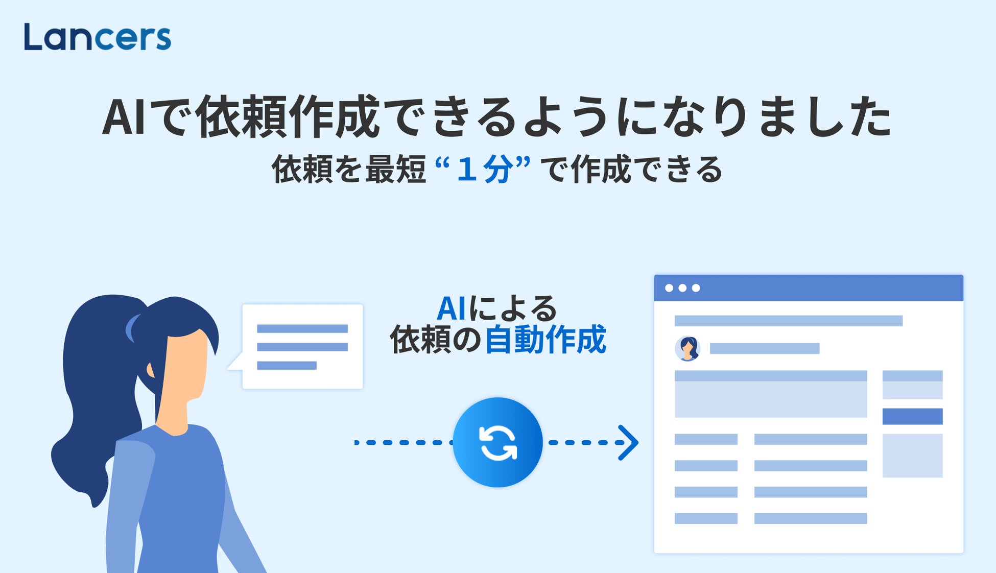 ランサーズ株式会社(本社:東京都渋谷区、代表取締役社長CEO:秋好 陽介、東証グロース:4484、以下『ランサーズ』)は、運営するフリーランスマッチングプラットフォーム「Lancers」において、「AI自動依頼」機能をリリースいたしました。ランサーズは、テクノロジーの可能性を最大限に活かし多くの人に価値と成長機会を提供することで、今後もよりよい社会づくりに貢献してまいります。