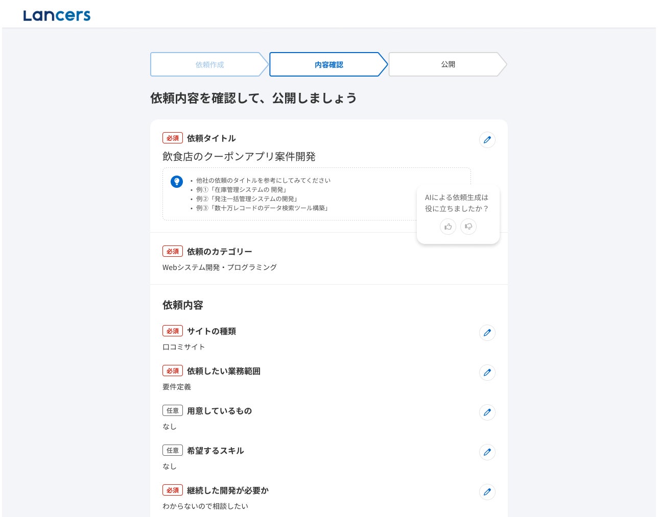 ランサーズ、発注作業を簡単にする新機能「AI自動依頼」をリリース