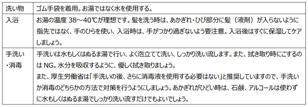 水回りでは、あかぎれ対策を意識することが大切です。各シーンでは以下のポイントに気を付けると良いでしょう。