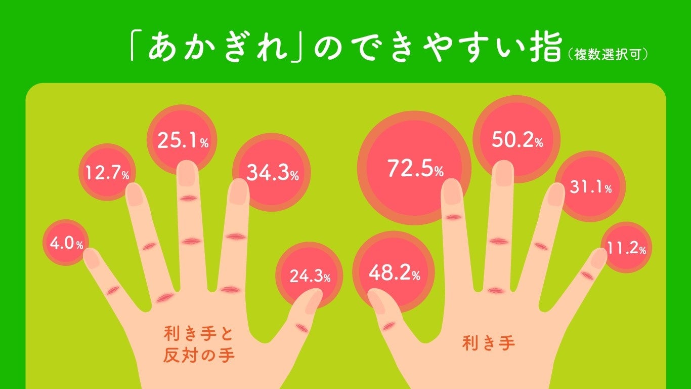 あかぎれができやすい場所は「指先」。中でも「利き手の人差し指」が最多に》