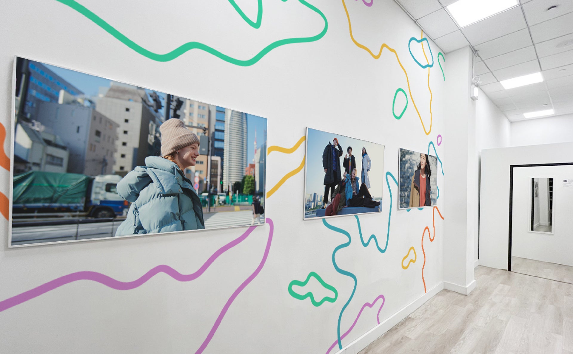 国内のジーユー旗艦店(渋谷店・銀座店・マロニエゲート銀座店)および海外の一部店舗では世界地図のアートワークを施した特別な装飾が店頭や店内を飾ります。