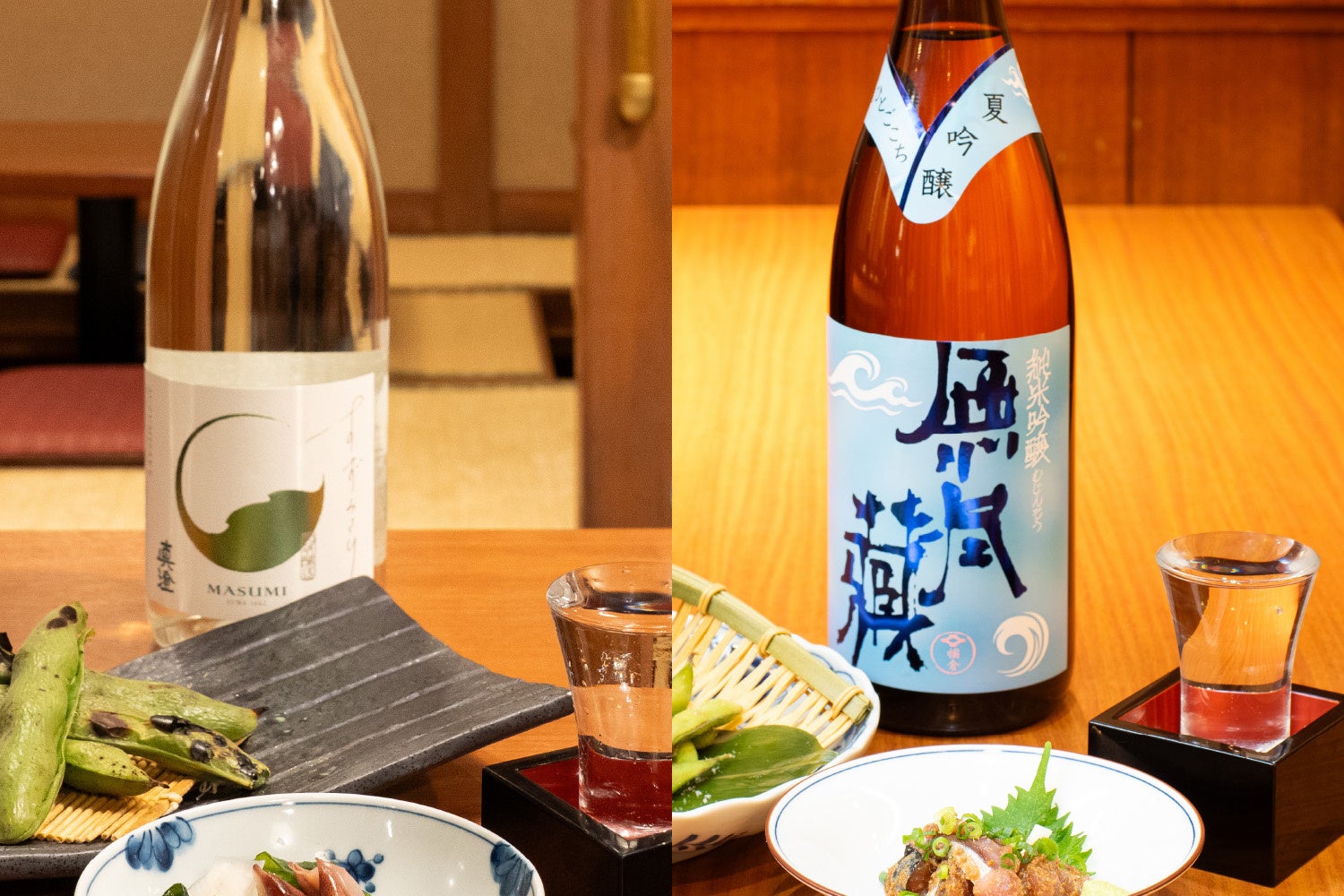 料理に合わせ初夏から楽しみたい夏酒として、長野は宮坂醸造「真澄 純米吟醸 すずみさけ」(一合850円)と、同じく長野の橘倉酒造「無尽蔵 夏吟醸」(一合800円)を厳選しました。