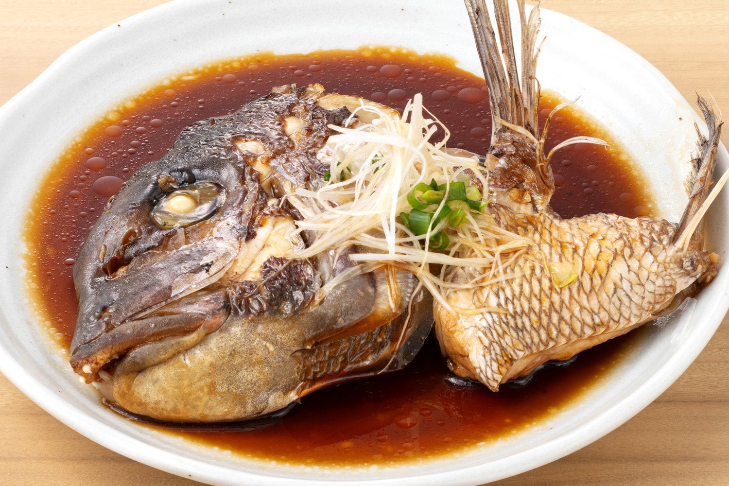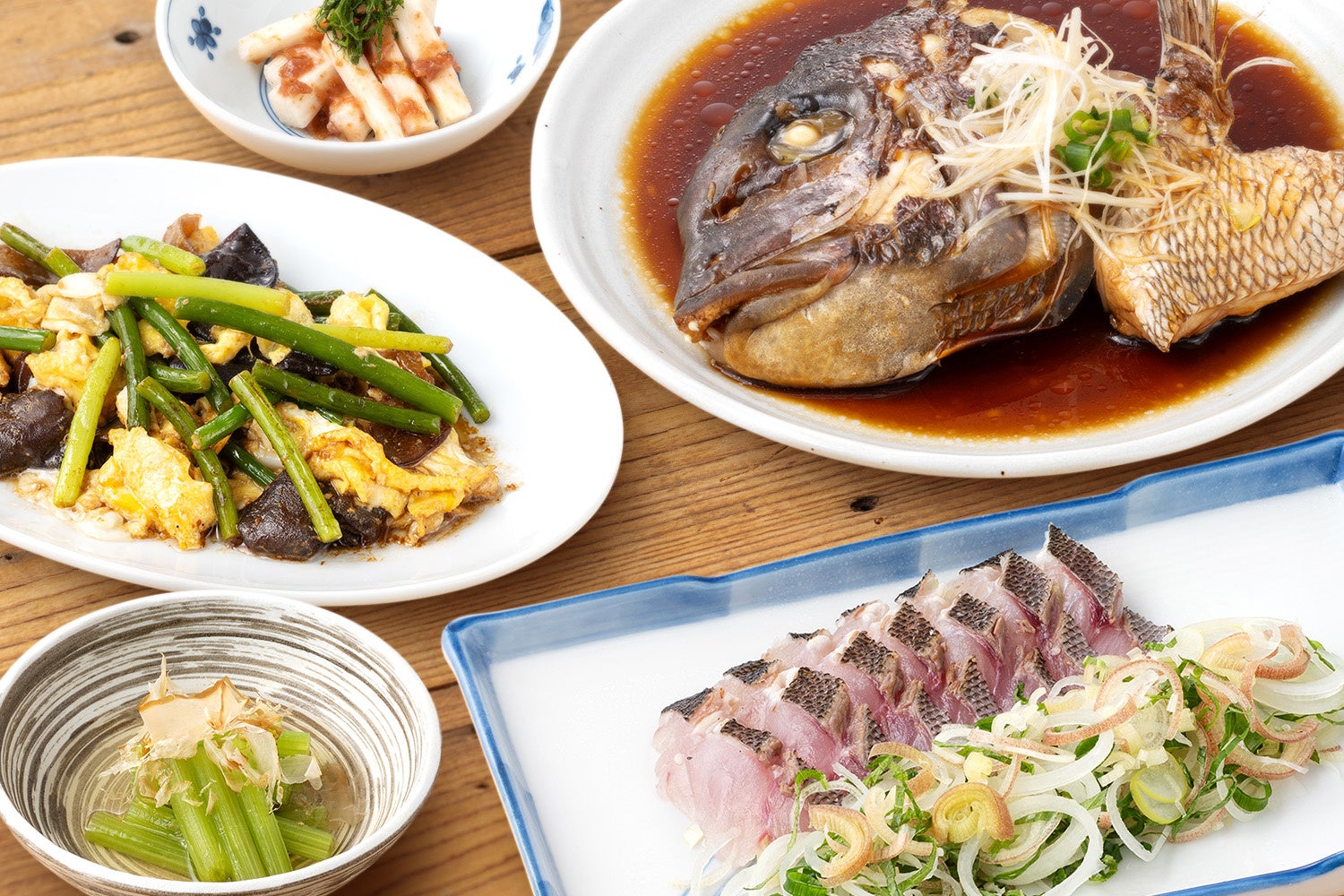 キリっと冷えた日本酒と相性抜群の「真鯛のかぶと煮(500円)」は、“板前がいる”『庄や』だからこその逸品。脂がのったカマ、引き締まった頬肉、目のまわりのとろけるような身など、部位の違いを楽しめるのが魅力です。注文が入ってから板前が強火で一気に炊き上げるので、鯛本来の旨味と出来立ての美味しさが味わえます。