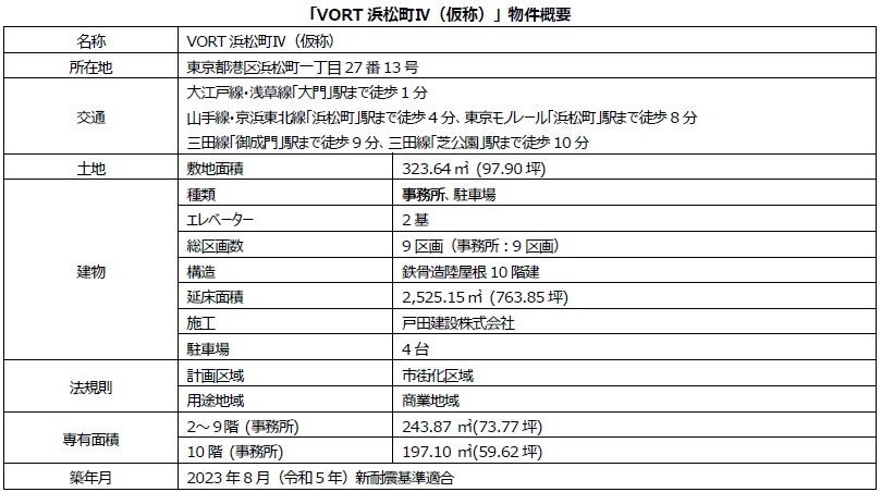 「区分所有オフィス®」を主軸に資産形成コンサルティングを行う株式会社ボルテックス(東京都千代田区 代表取締役社長 兼 CEO 宮沢 文彦、以下当社)は、「VORT浜松町Ⅳ(仮称)」を取得しました。
