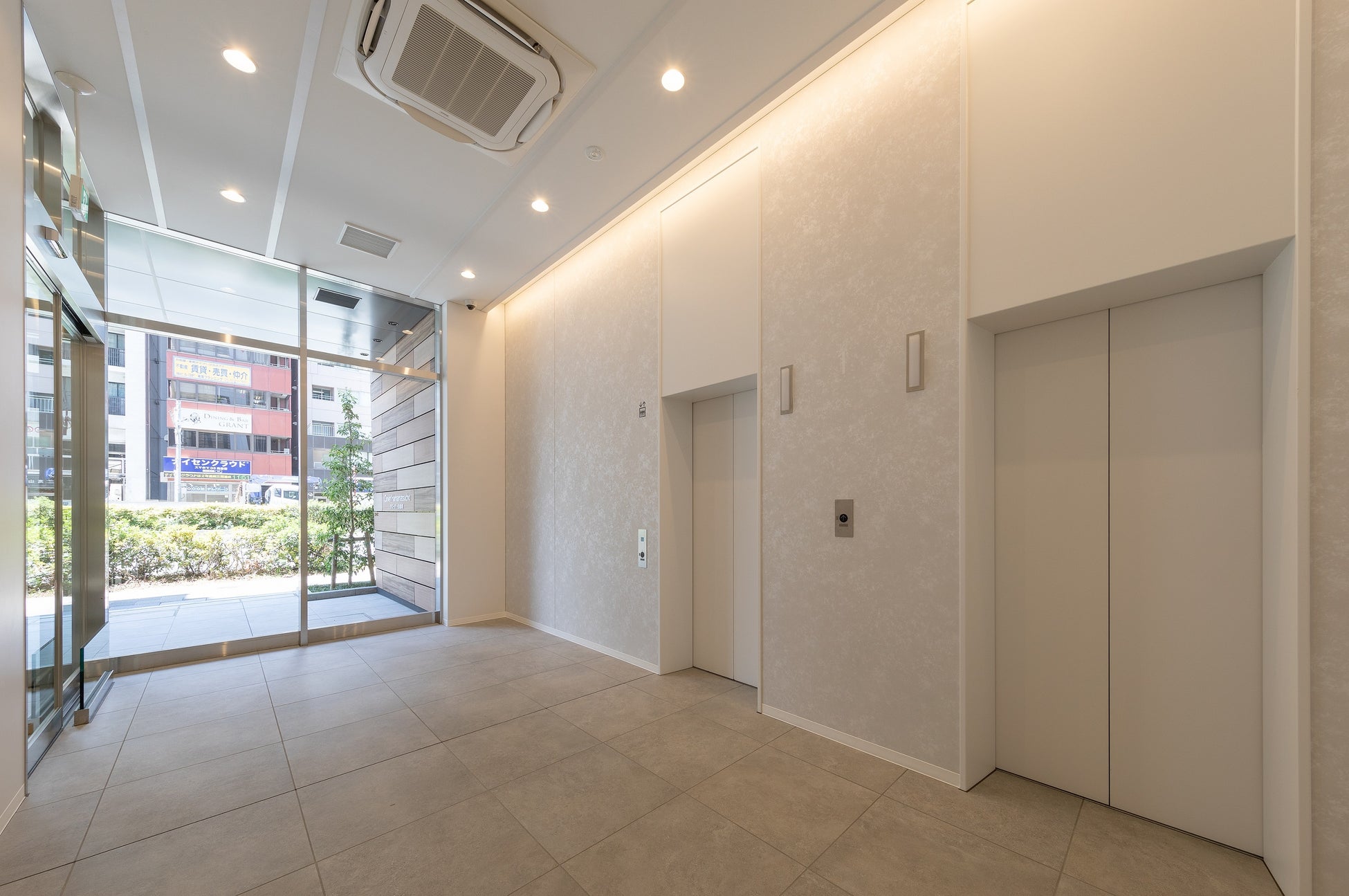 2023年8月竣工、地上10階建て、白を基調とした清潔感のあるデザインのオフィスビルです。バリューアップを施し、アプローチ正面に館名サインとテナント看板を設置することで、ビル自体の視認性を高めることができます。