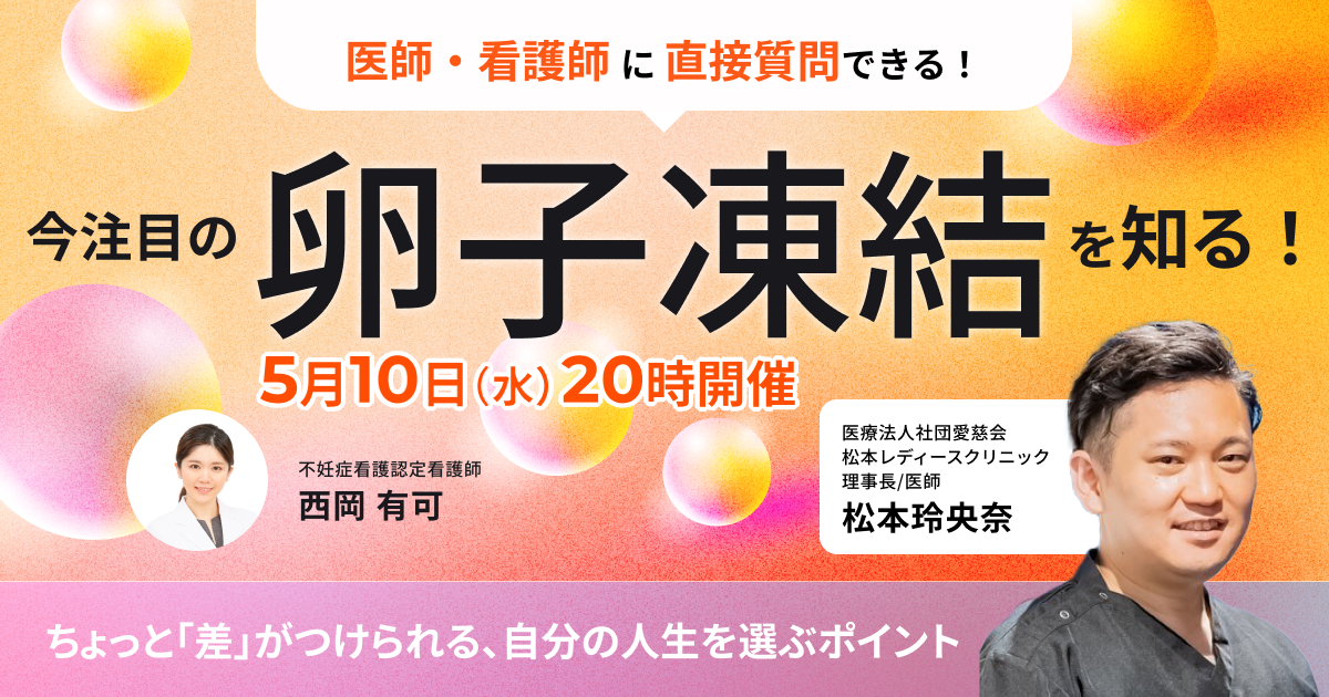 松本レディースクリニックの松本玲央奈先生をお迎えし5/10に卵子凍結に関する無料オンラインセミナーを開催