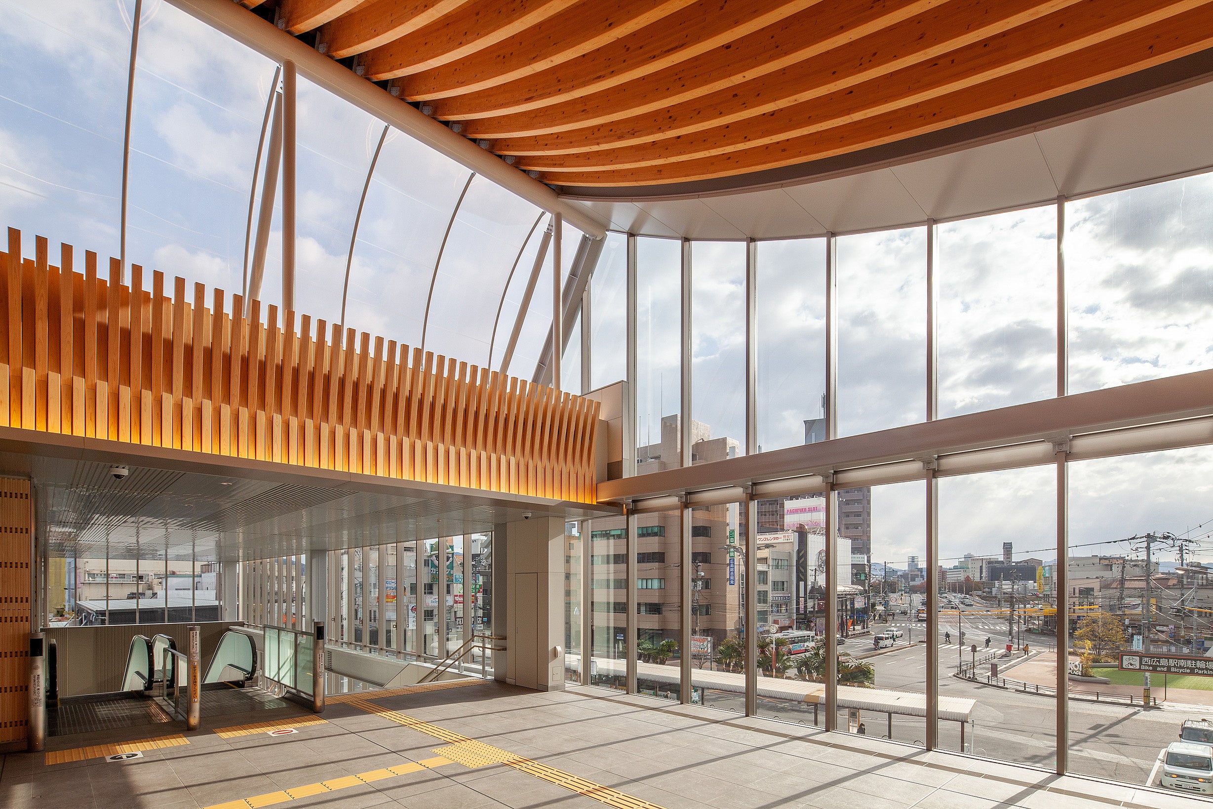 内と外、公と私、都市と郊外、現在と過去、これら二項対立する境界領域は、双方の環境特性を有する意味でハイブリッド環境と呼ぶことができる。この境界領域では、そこを行き来する人々の流れがぶつかり様々な出来事が起きる。衝突や出会いは科学反応を起こして新たな文化を生む。こうした都市活動が最も活性する刺激的な場所が境界領域の特徴だ。都市デザインで有名なJan Gehlは彼の著書「Life Between Buildings: Using Public Space」の中で次のように書いている。要約すると、子供は本能的に刺激的な場所を知っている。それは玄関先だ。そこでは様々な出来事が起きる。友達が通り過ぎる。家族が帰ってくる。宅配の配達物が届く等々、子供は人やモノとの出会い、出来事が大好きなのである。この原理は駅空間にも共通する。受賞作の「西広島橋上駅」はまさに都市と郊外の境界領域である。鉄道、バス、タクシーから歩行者まで、様々な流れがぶつかり、出来事が起き、都市文化が醸成される。こうした出来事つまり都市活動が展開するこの駅空間では、木材を多用した内部空間が天窓のような開口部を通して周辺地域の町並みから際立ち、そこで起きる様々な出来事を見せる舞台のように機能している。このように「西広島橋上駅」の環境要素は、人、交通、土地、歴史など多様な流れと交わりをレイヤーとして、壁面や屋根の開口部を通して際立つ。それはあたかも子どもが大好きな玄関先の出来事を劇場のように見せ、観せ、魅せる境界領域として至って優れたハイブリッド環境であると審判した。 |