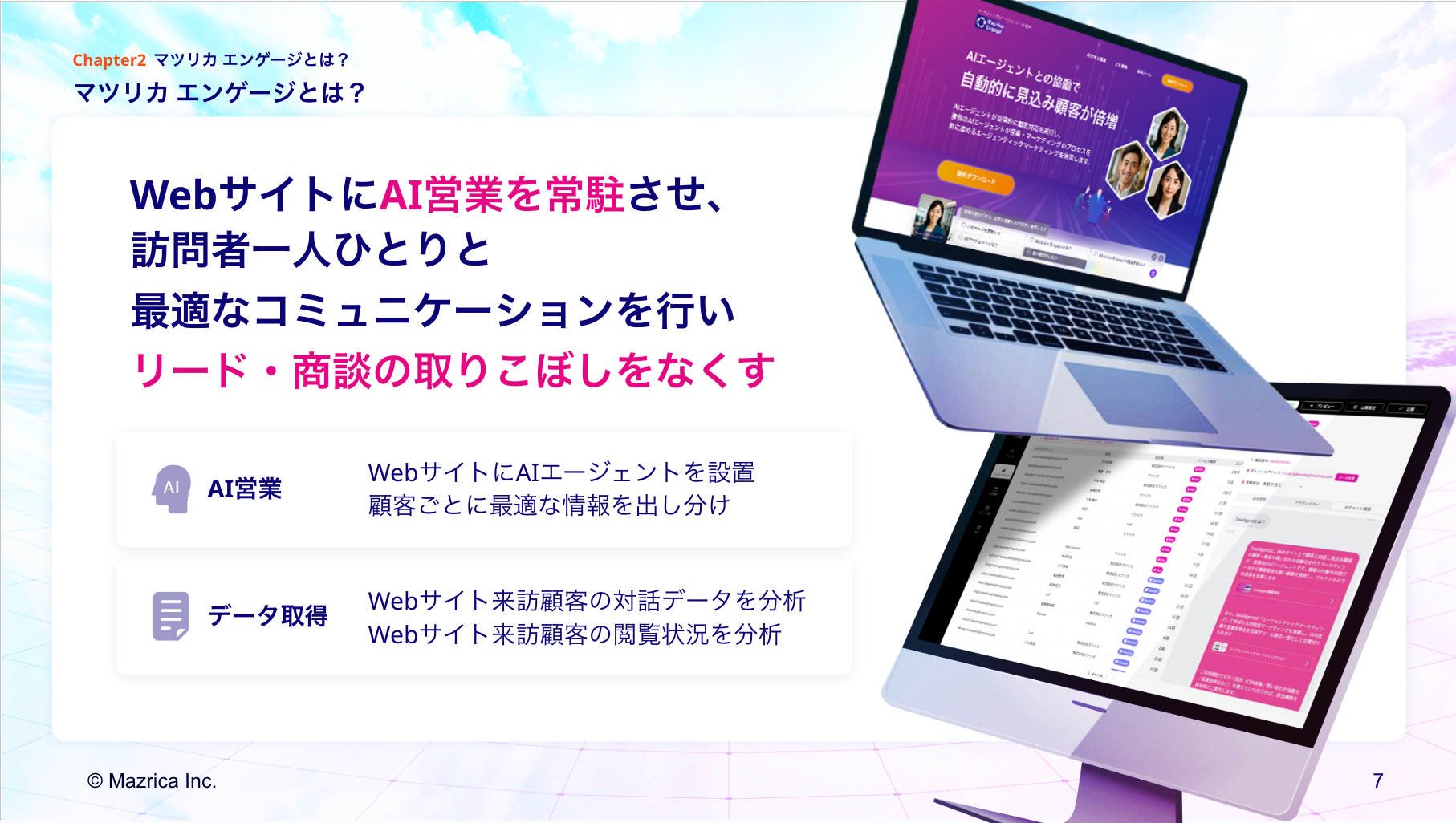 Mazrica Engage、Webサイトに「AI営業担当」を常駐させ、サイト訪問者の閲覧箇所に合わせて自ら提案・案内