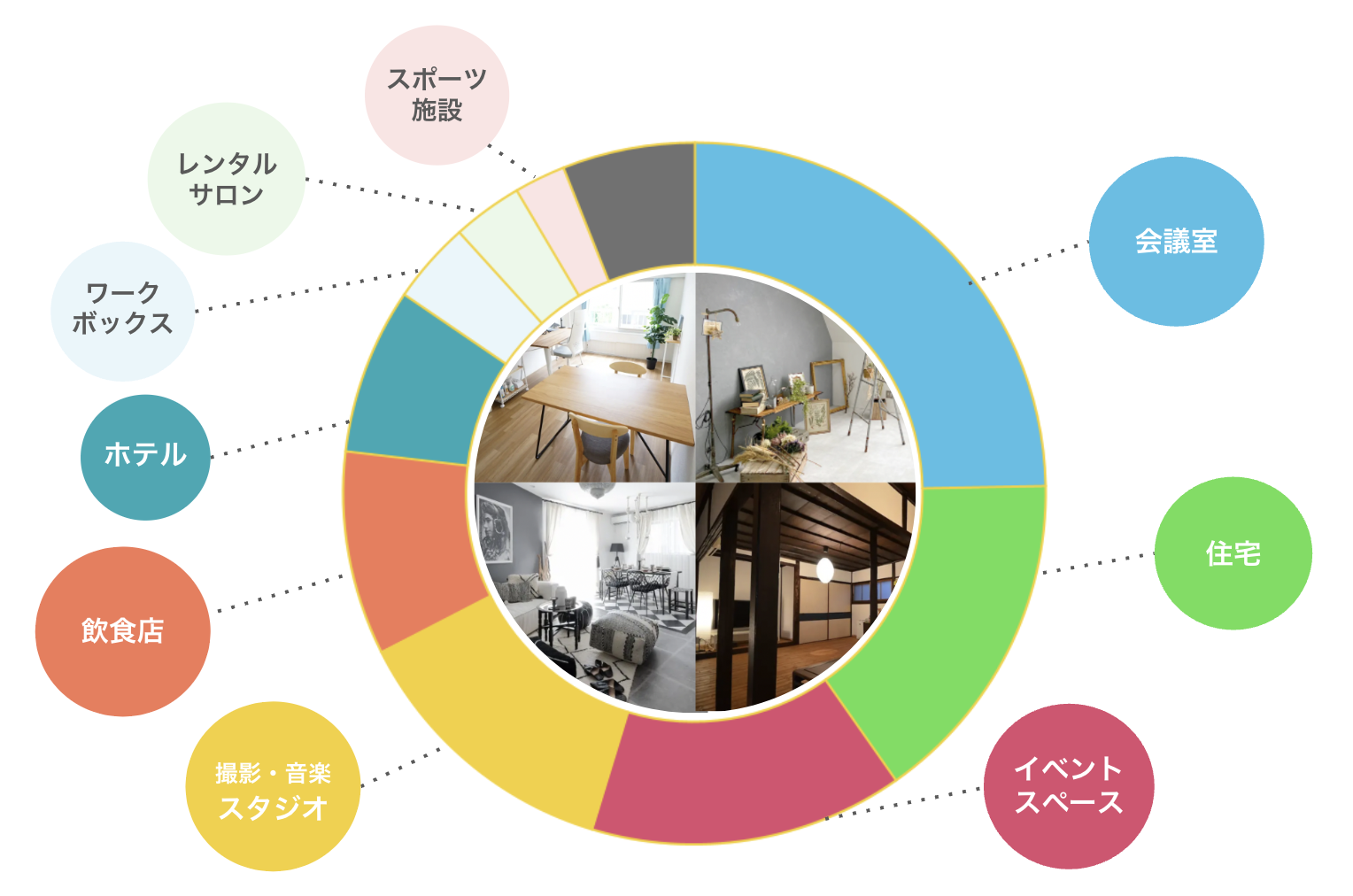 スペースを貸し借りするプラットフォーム「スペースマーケット」には、全国20,000件以上のスペースが掲載され、国内最大規模です。住宅、古民家、会議室、撮影スタジオ、映画館、廃校など多岐にわたるスペースが、撮影、会議、イベントなどに利用されています。URL:https://www.spacemarket.com/
