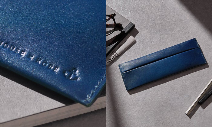 神戸を象徴する神戸港をイメージして、アンティーク フラット ペンケースを限定色ネイビーでご用意しました。航海の安全をねがう錨(いかり)マークと「MOTHERHOUSE × KOBE」を刻印しました。