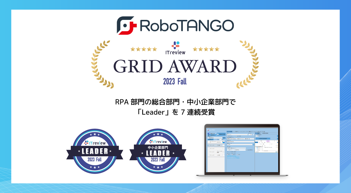スターティアレイズのRPA『RoboTANGO』、「ITreview Grid Award 2023 Fall」にてLeaderを3部門で受賞