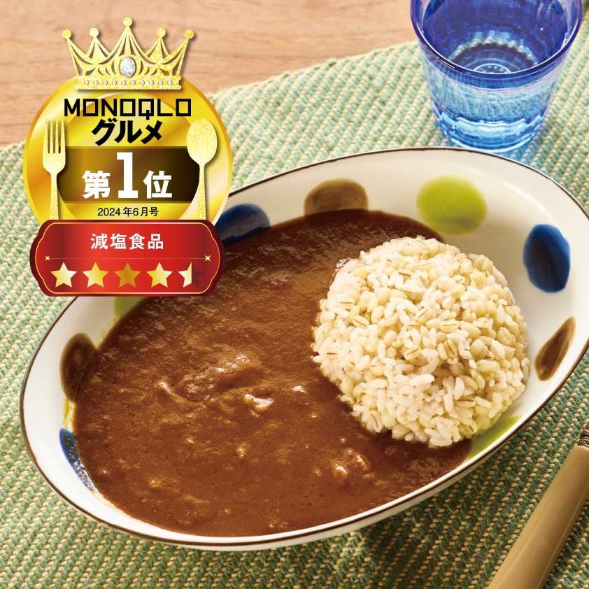 血圧に働きかけるDHAとEPAが含まれているのがポイント。ソース中心のカレーで、最初に玉ねぎの甘さが来て、食べ進めるとピリッとした辛さとビーフのおいしさが続く、奥行きのある味です。