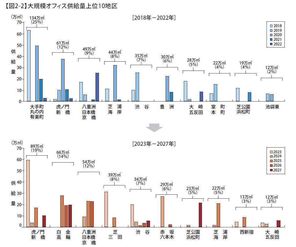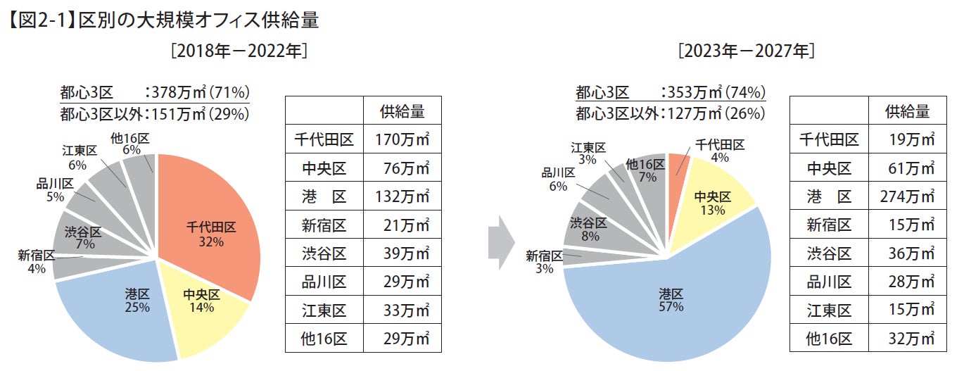 東京23区の大規模オフィスビル供給量調査 '23