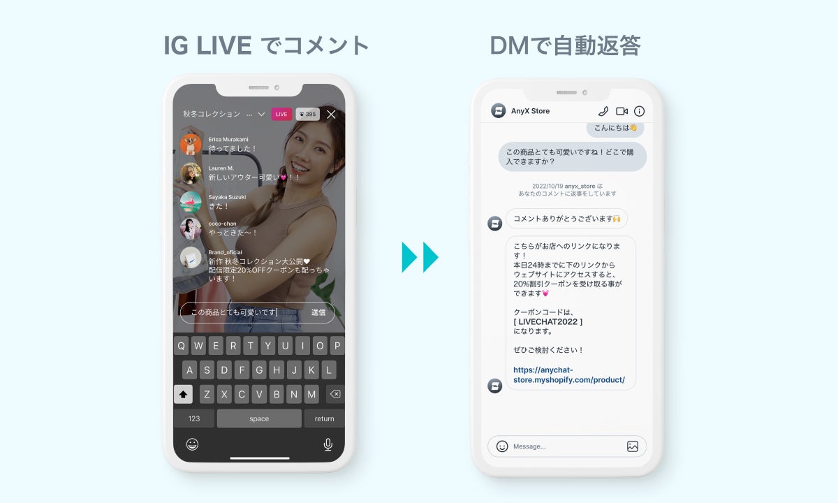 AnyMind Group株式会社(読み:エニーマインドグループ、代表取締役CEO:十河 宏輔、以下「当社」)は、会話型コマースプラット「AnyChat」をInstagramと連携し、「Instagramライブ コメント自動返信機能」の利用が可能となりましたのでお知らせいたします。