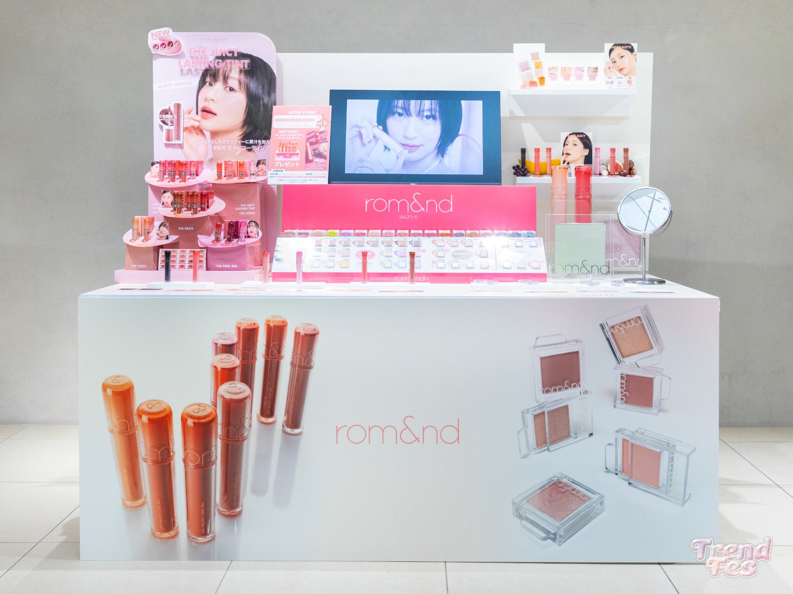 各ブランドのブースとしては、rom&nd、パーフェクトワンフォーカス、ルルルン、ナリス化粧品、サボタなど、カラーコスメからスキンケア系&シャンプートリートメントまで幅広かったです!